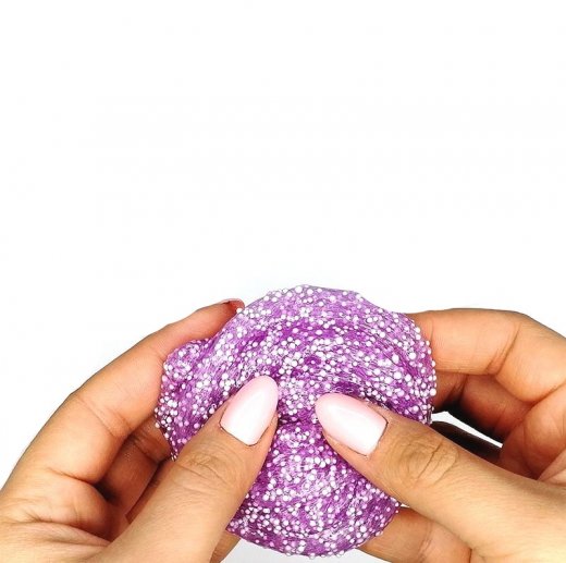 Magic slime с белыми шариками это удивительная эластичная масса , которая представляет собой жвачку для рук приятной сиреневой расцветки с белыми шариками. Вещество обладает невероятными свойствами, благодаря которым с ней можно творить все, на что только хватит детской фантазии. Материал, из которого сделана жвачка, обладает отличной прыгучестью и замечательно тянется, и даже может растекаться. В умелых руках она легко принимает желаемую форму.