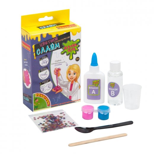 Цветной слайм со звёздочками - это набор, позволяющий сделать яркий цветной слайм, в который можно добавить разноцветные мерцающие звездочки. Для этого уже есть всё необходимое основной раствор А, контактный раствор В, пакетик с разноцветными звездочками, палочка для размешивания, краски 2 шт., мерный стаканчик, инструкция. Устройте домашнюю мини-лабораторию по производству слаймов. Проводите полимерно-гелиевые опыты и экспериментируйте!