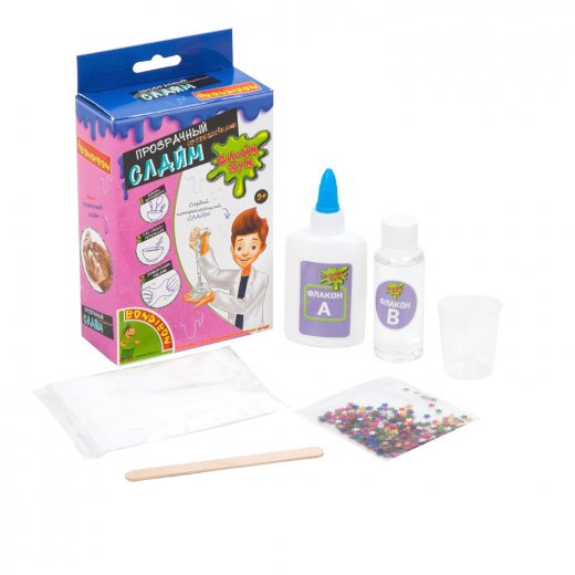 Прозрачный слайм со звёздочками - это набор, позволяющий сделать потрясающий прозрачный слайм, в который можно добавить разноцветные мерцающие звездочки. Для этого уже есть всё необходимое основной раствор А, контактный раствор В, пакетик с пенопластовыми шариками, пакетик с разноцветными звездочками, палочка для размешивания, мерный стаканчик, инструкция. Устройте домашнюю мини-лабораторию по производству слаймов. Проводите полимерно-гелиевые опыты и экспериментируйте!