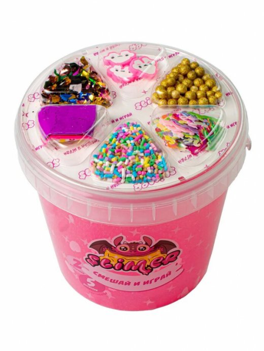 Все очень любят экспериментировать и добавлять в свои слаймы наполнители. Это стимулирует воображение и мелкую моторику, займёт ребенка на долгое время. В набор Slimer Смешай и играй входят: красочный полупрозрачный слайм, пенопластовые шарики, блестки, голографические фигурки, посыпка, красители.