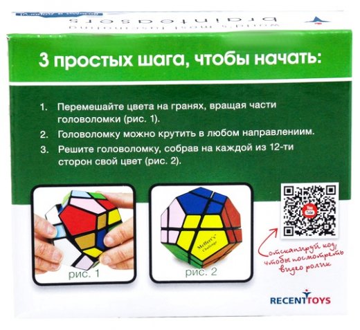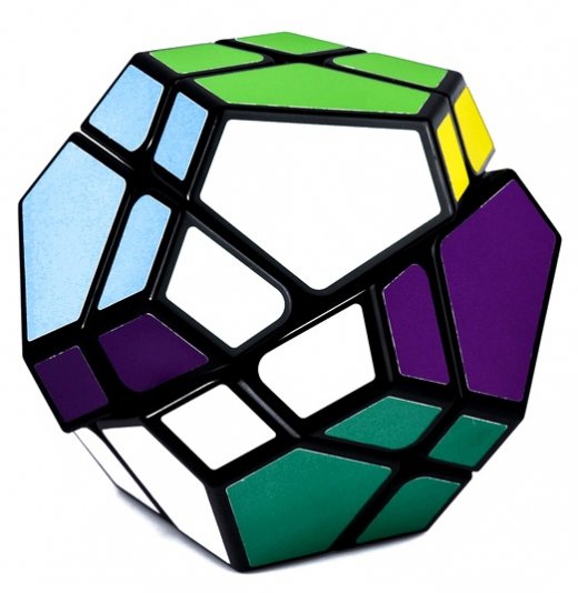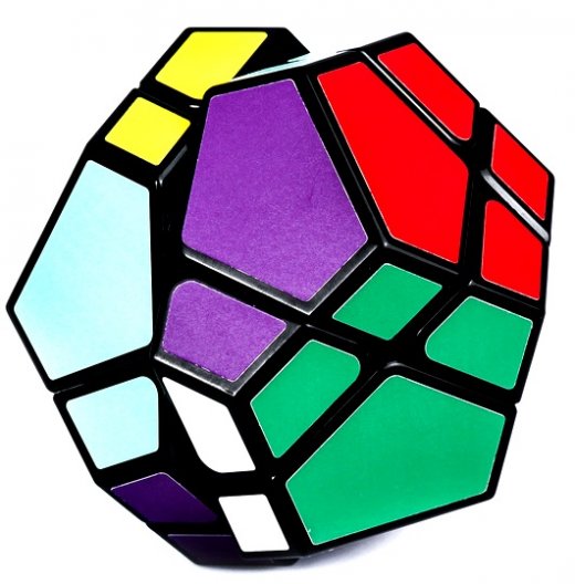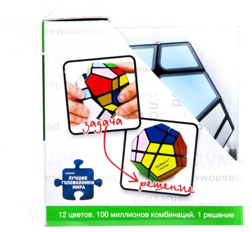 Экзотическая форма головоломки — додекаэдр, равностороннее 12-гранное геометрическое тело. Skewb Ultimate от Meffert’s — это настоящий вызов, редкость и раритет, который высоко ценится коллекционерами и любителями механических головоломок. Каждую из сторон головоломки крест-накрест “разрезают” 2 линии, образующие элементы двух видов: маленькие трехцветные и большие четырехцветные. Оба разреза проходят насквозь через всю игрушку каждый раз разделяя ее ровно на 2 половины. Действительно, интересная и необычная головоломка.