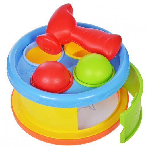 Малыши обожают бить в барабан, потому что это очень весело! А наш барабан еще и с секретом! С одной стороны барабана - обычная пластиковая мембрана. Малыш может ударять по ней молоточком, издавая негромкий, не раздражающий слух звук. С другой стороны барабана - развивающая игрушка-сортер. С помощью молоточка малыш может забивать разноцветные шарики в соответствующие им по цвету отверстия, одновременно тренируя координацию движений и запоминая цвета. Достать шарики можно через специальную дверцу в боковой части барабана - и можно начинать игру сначала!