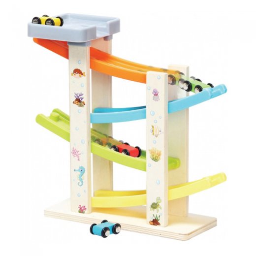 В комплекте с паркингом прилагаются 4 яркие машинки разных цветов. Их можно катать с горки и устраивать с ними настоящие соревнования!