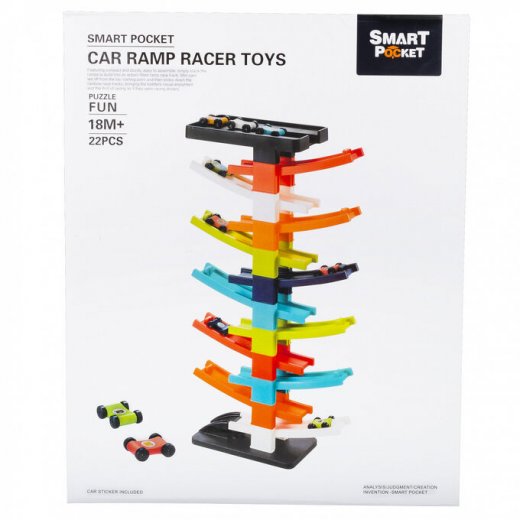 Это очень оригинальная и занимательная игрушка для детей всех возрастов. Машинки ставятся на верхнюю платформу и начинают скатываться под действием силы тяжести. Такая игрушка хорошо развивает зрительное внимание у совсем маленьких детей, детишки постарше смогут уже самостоятельно ставить машинки на платформы, и таким образом развивать мелкую моторику рук.