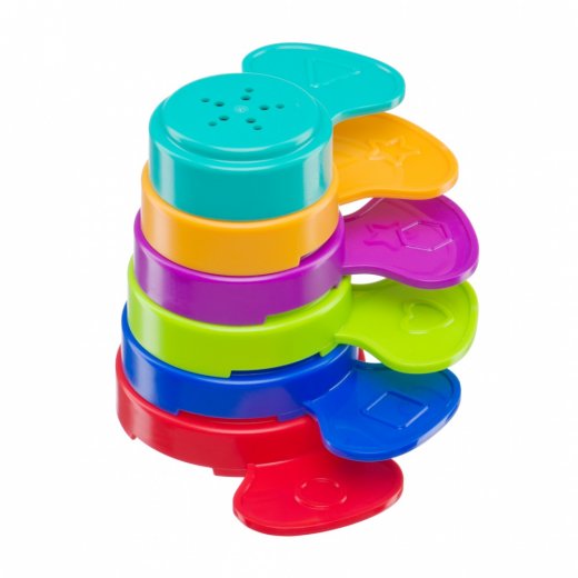 Пирамидка формочки "Цветочек" состоит из 6-ти разноцветных лепестков, центральной части в виде забавной мордочки и нижней части-листьев. На каждом лепестке есть маленькие дырочки и фигурное изображение разных геометрических фигур. Через лепестки можно лить водичку во время купания в ванной или просеивать песок в песочнице. А можно просто собирать и разбирать пирамидку из элементов цветочка.