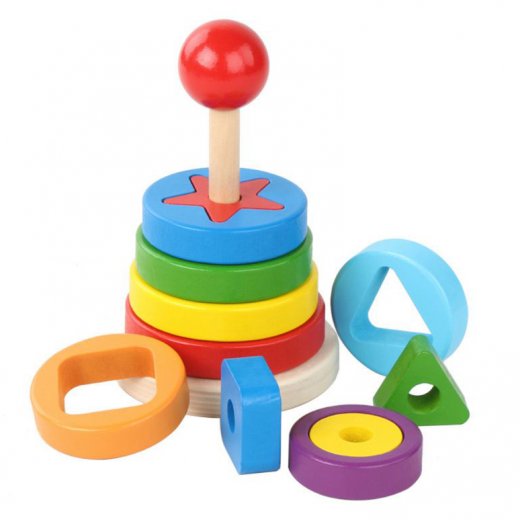 Купить "Пирамидка с геометрическими фигурами дерево" в Новосибирске Вы можете в магазине развивающих и настольных игр "Игры Почемучек".