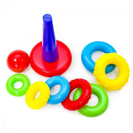 Развивающая игрушка пирамидка - одна из первых развивающих игрушек малыша, которая состоит из основы-стержня, круглых колец и наконечника в виде шарика. Каждое кольцо разного цвета и имеет разные рельефы.