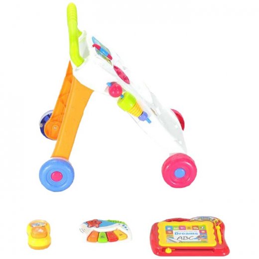 Игровая панель разработана для того, чтобы помочь малышу сделать первые шаги. Ребёнок может держаться за ручку и идти, толкая каталку перед собой.