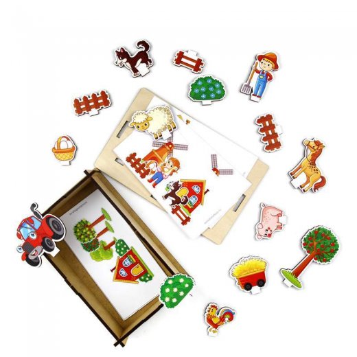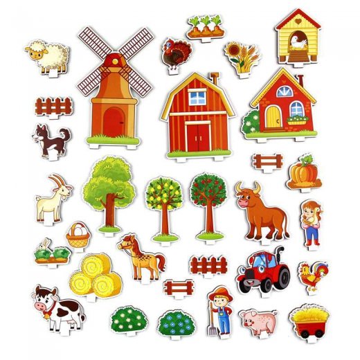 Панорама "Ферма" - это переход от плоскости к объемному восприятию ребенка. Игра – тренажер для моторики рук, задача вставить фигурку под прямым углом. Непоседы научатся концентрироваться, ориентироваться в пространстве, разовьют глазомер и обогатят словарный запас. С помощью карточек-схем ребенок создаст картину, разовьет сюжет, составит короткий рассказ по теме.
