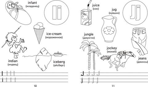 Если ваш ребенок уже начал изучать английский язык, то ему, конечно же, пригодится эта тетрадь. Занимаясь по ней, дети смогут закрепить знания о порядке букв английского алфавита, научиться их прописывать, познакомятся с написанием слов на каждую из букв, раскрасят картинки и буквы. В тетради даются названия цветов, цифр, а также некоторые местоимения.