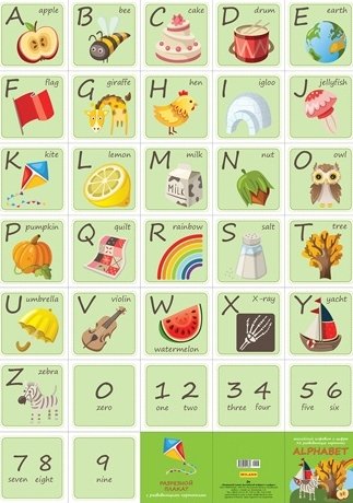 Английский алфавит и цифры 30 развивающих карточек – включает в себя 30 цветных обучающих карточек с буквами и цифрами. Карточки оформлены ярко и красочно, поэтому без труда привлекут внимание ребенка. Ребенок в игровой форме сможет познакомиться с английским алфавитом и научиться считать. При помощи карточек можно донести ребенку, в ненавязчивой игровой и занимательной форме, первые азы познания английского. С этими карточками можно придумать множество обучающих игр для ребенка.