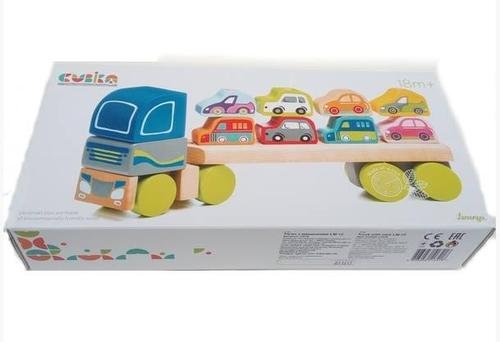 Купить "Грузовик с машинками деревянный" в Новосибирске Вы можете в магазине развивающих и настольных игр "Игры Почемучек".