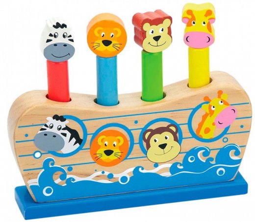 Игрушка "Веселый ковчег" - веселая игрушка для детей от 2 лет. Внутри отверстий находятся пружинки, если нажать на фигурку сверху она подпрыгнет. Фигурки вынимаются из ковчега. Вставить их обратно в отверстия - дополнительная задача для малыша.