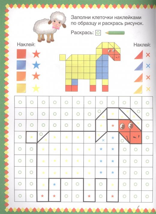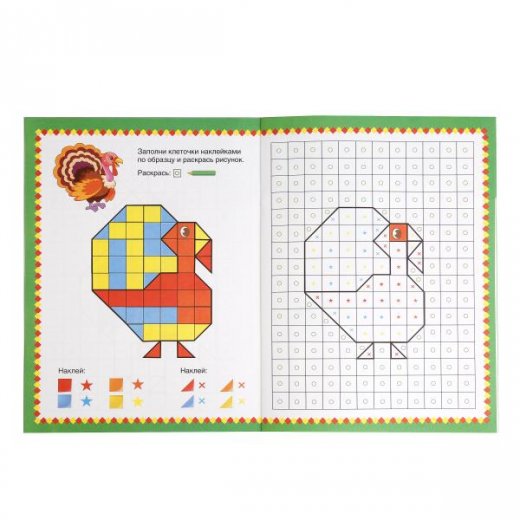 Умная мозаика 1000 наклеек "Домашние животные" - это увлекательная книга-игра и одновременно развивающая раскраска. Ребёнок будет с удовольствием складывать мозаики с изображением домашних животных, рассматривая и запоминая различные цвета и фигуры. На контурных формах есть звездочки и крестики определенных цветов, которые показывают, какой тип наклейки надо нанести на основу. Кружочки обозначают, что данную зону можно раскрасить цветными карандашами.