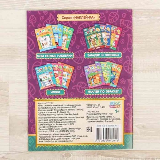 Купить книга с наклейками Наклей по образцу "Сказки" в Новосибирске Вы можете в магазине развивающих и настольных игр "Игры Почемучек".