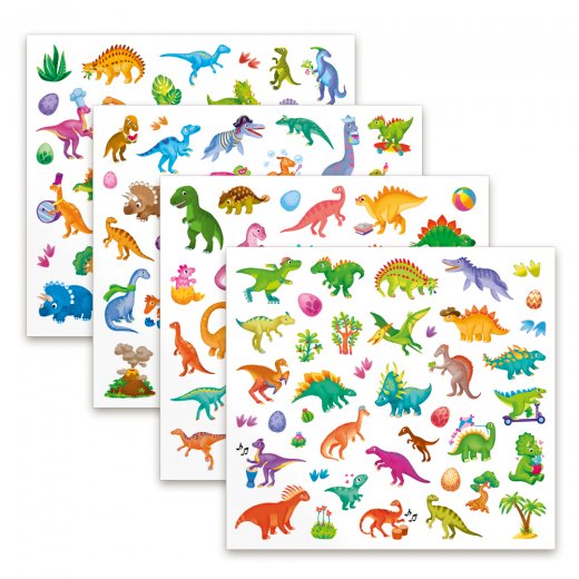 Набор из 150 ярких многоразовых наклеек на любимую тематику мальчишек и девчонок - "Динозавры" упакован в удобную папку, что позволяет не расставаться с ними и брать с собой куда угодно: к бабушке, в садик, в самолёт и в гости.
