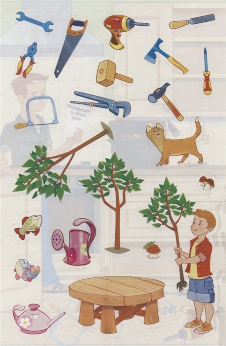 Купить многоразовые наклейки "Дополни картинку Папины помощники" в Новосибирске Вы можете в магазине развивающих и настольных игр "Игры Почемучек".