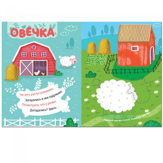 Купить книжку с наклейками загадками "В деревне" в Новосибирске Вы можете в магазине развивающих и настольных игр "Игры Почемучек".