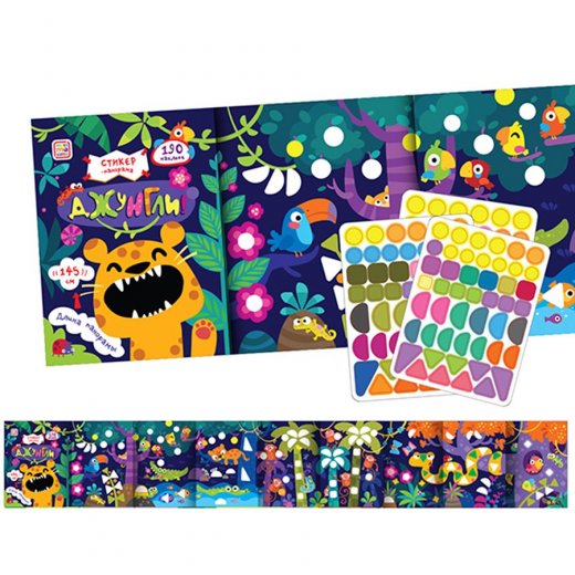 Купить стикер-панорама "Джунгли 190 наклеек" в Новосибирске Вы можете в магазине развивающих и настольных игр "Игры Почемучек".