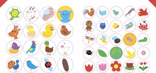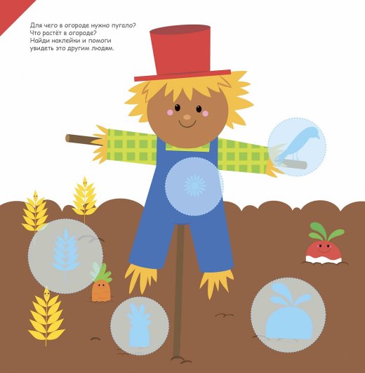 Места для наклеек выделены пунктирной линией, чтобы малышу было проще отыскать подходящую наклейку, на страницах альбома помещены подсказки - силуэты картинок.