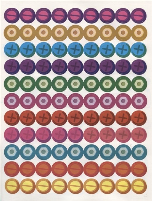 Уважаемые взрослые! В этой книге 198 наклеек - разноцветных винтиков и болтиков! Малыш должен дополнить с их помощью картинки. Это очень просто: покажите ему, что наклейку нужно приклеить на белый кружочек. Обратите внимание малыша на то, что в первую очередь нужно приклеить детали, которые скрепляют элементы конструкций между собой. Если с первой попытки приклеить ровно не получилось - не беда, ведь наши наклейки многоразовые.