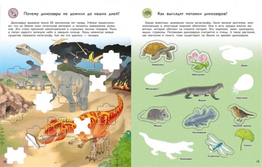 Издание расскажет: когда появились первые динозавры и как они выглядели, как шло развитие их видов и когда их было больше всего на нашей планете, чем питались динозавры и как они защищались, как появлялись детёныши динозавров и как им приходилось выживать, какие динозавры жили в море и откуда мы про них знаем, почему динозавры не дожили до наших дней и как выглядят потомки динозавров.