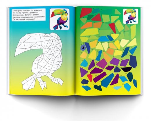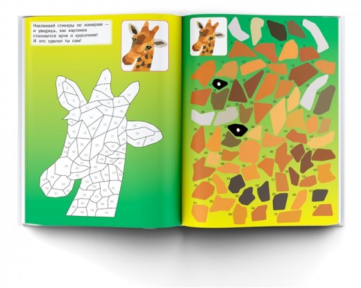 "Зоопарк" - самая настоящая волшебная книжка для юных художников. Это красочные иллюстрации + более 500 геометрических стикеров. Ребята узнают, что рисовать можно не только карандашами, фломастерами или красками, но и наклейками. Получаются картинки с 3D-эффектом! Достаточно подобрать наклейки по номерам. Ребёнок удивится и обрадуется, когда животные на страницах станут красочными и объёмными. Юным художникам обязательно понравятся интересные задания на развитие логики, памяти, внимания, мелкой моторики.
