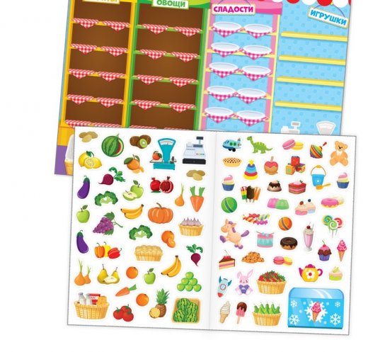 С этим набором обучение превратится в интересное занятие. Играйте вместе с ребёнком в магазин, изучайте цвета и сортируйте наклейки по полочкам.