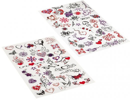 Набор Тату-арт Романтика – замечательный подарок для юной модницы. Набор предназначен для создания временных татуировок, столь популярных среди девочек и девушек в настоящее время. Благодаря ему маленькая модница сможет украсить свое тело стильной и великолепной татуировкой. Комплект содержит 72 переводных наклейки, которые можно нанести на кожу человека. Компоненты материалов для нанесения тату совершенно безопасны для ребенка. Наклейки не вызывают каких-либо аллергических реакций или раздражения, кроме того, они легко смываются мылом и мочалкой.