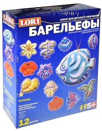 Набор для изготовления кулонов позволит девочке своими руками создать эксклюзивные украшения, которые больше не встретятся ни у одной подружки! В комплекте есть 12 различных форм — рыбка, крабик, медуза, ракушки, листики и цветочки. С помощью формы, в которую заливается гипс, получается оригинальный барельеф. Барельеф можно раскрасить акварельными красками, которые также входят в набор. Сделать их совсем не сложно, для этого нужно: