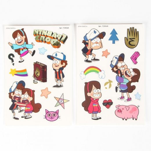 Купить Переводные наклейки Гравити фолз светятся в темноте в Новосибирске Вы можете в магазине развивающих и настольных игр "Игры Почемучек".