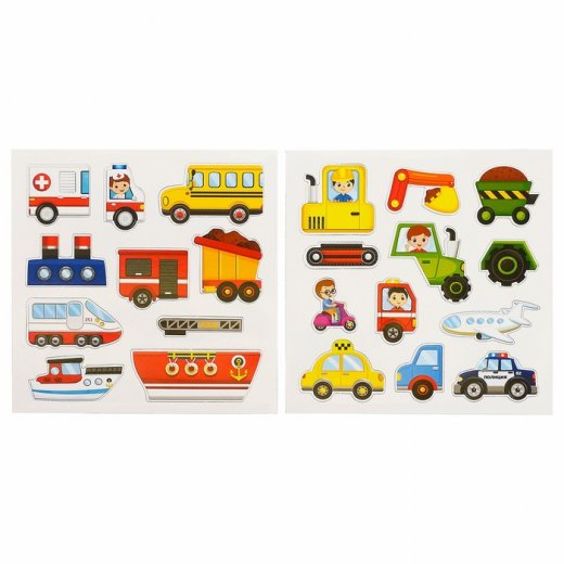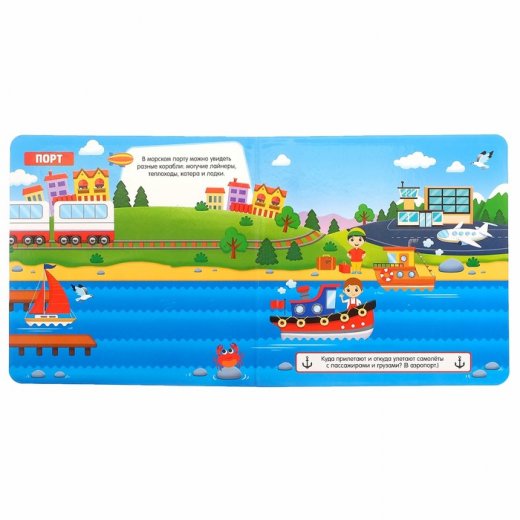 Какие машины можно встретить в городе, а какие работают на строительной площадке и в порту? Играя с магнитными фигурками, малыш познакомится с разными видами транспорта.