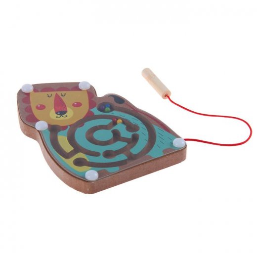 Лабиринт магнитный "Лев" - увлекательная головоломка для самых маленьких. Магнитный лабиринт представляет из себя деревянную доску с извилистыми ходами. К данному лабиринту привязана деревянная палочка с магнитом на конце. Шарики внутри игры - тоже магнитные. Суть магнитного лабиринта в том, чтобы довести каждый шарик в конечную точку маршрута с помощью специальной ручки на шнурке. Для того чтобы шарики случайно не выпали, сверху лабиринт покрыт прозрачной пластмассой.