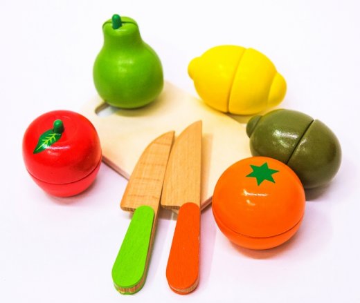 Игры с нарезкой овощей ещё никогда не были такими безопасными! Игрушечным деревянным ножичком легко и просто нарезать продукты: они скрепляется с помощью липучего элемента! Набор для детских игр из фруктов и овощей никого не оставит равнодушным! С помощью деревянного ножика фрукты легко разрезаются и соединяются. Пара движений и фрукт снова целый! Набор станет прекрасным дополнением к кухне или самостоятельной игрой. Игра учит пониманию схожести, поиску соответствий, а также развивает логику, воображение и мелкую моторику!