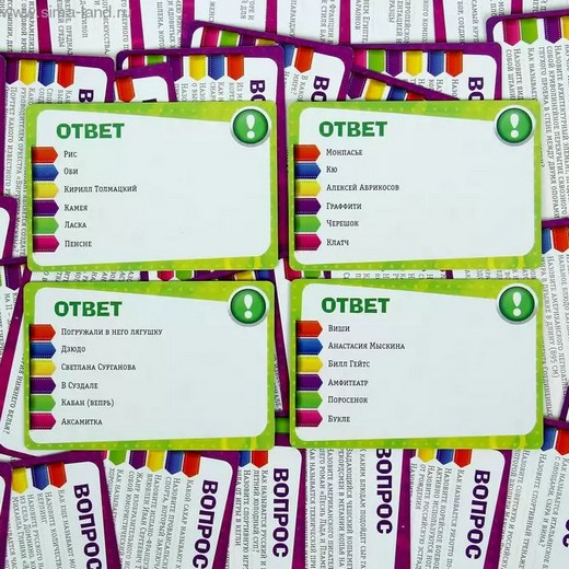 Игроки отвечают на вопросы с карточек и движутся по карте за счет верных ответов.