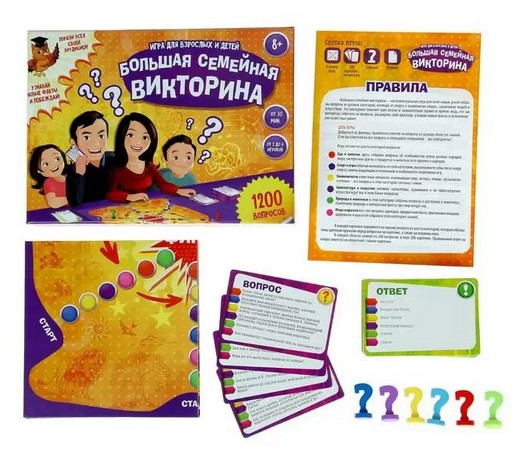 Оставить свой отзыв о настольной игре Большая семейная викторина (понравилось/не понравилось и почему) Вы можете чуть ниже в разделе Отзывы
