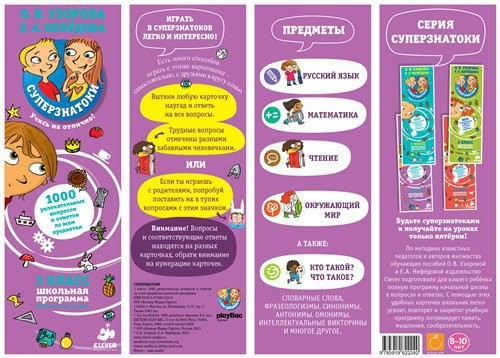 Будьте суперзнатоками и получайте на уроках только пятёрки! По методике известных педагогов и авторов множества обучающих пособий О.В. Узоровой и Е.А. Нефёдовой издательство Clever подготовило для вашего ребёнка полную программу начальной школы в вопросах и ответах. С помощью этих удобных карточек школьник легко усвоит, повторит и закрепит учебную программу, потренирует память, мышление, сообразительность. Словарные слова, синонимы, антонимы, омонимы, интеллектуальные викторины и многое другое: .• Математика .• Русский язык .• Окружающий мир .• Чтение