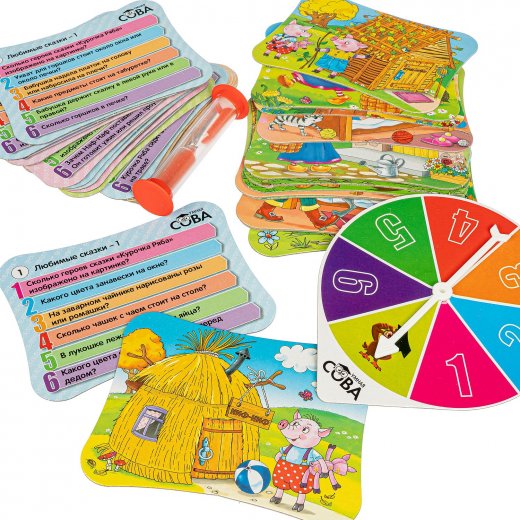 Младший из игроков берет карточку из колоды и раскручивает рулетку. Прочтите по счету тот вопрос, номер которого выпал на рулетке. Если стрелка указывает на сектор "Сова", у игрока есть возможность ответить на любой вопрос карточки.