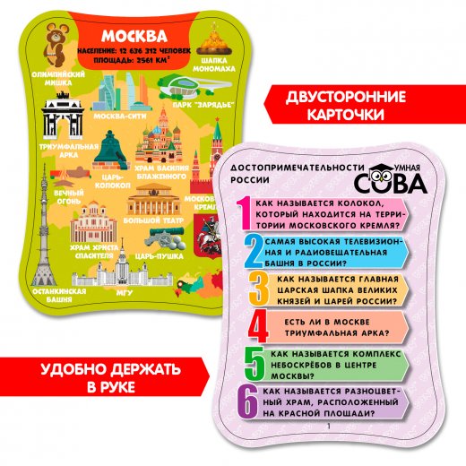 Купить игру-викторину Умная Сова "Достопримечательности России" в Новосибирске Вы можете в магазине развивающих и настольных игр "Игры Почемучек".