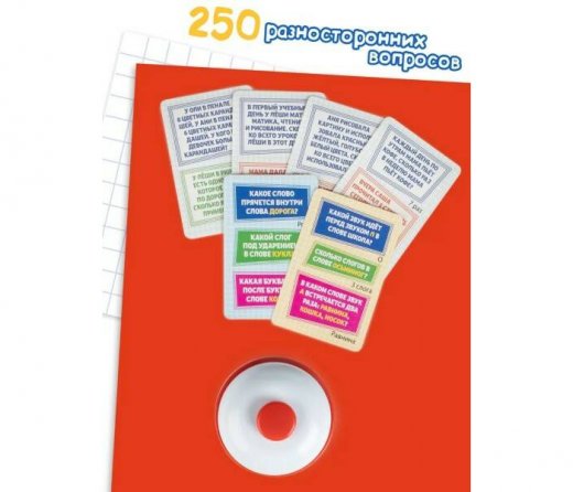 В комплект игры входит звонок, который сделает игру динамичной и увлекательной. Комплектация: игровые карточки: 50 шт; правила игры: 1 шт; звонок: 1 шт; блокнот для очков: 1 шт.
