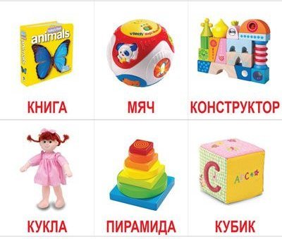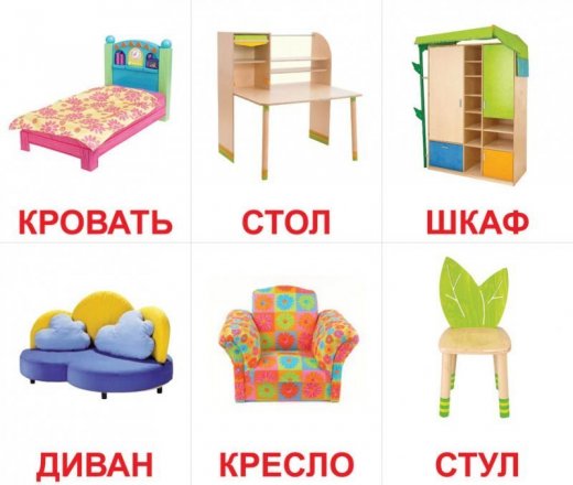 6. Игра в слова. Из всех 60 карточек ребенок должен найти те, на которых изображены предметы на заданную букву. Например, на букву «К»: Книга, кукла, кубик, кресло, кот, кровать, конфета, коляска, коврик, кроссовки, конструктор и так далее.