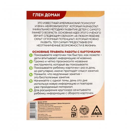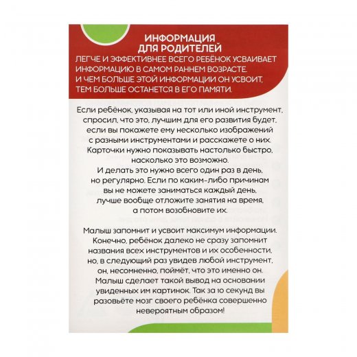 Купить Обучающие карточки по методике Г. Домана Инструменты в Новосибирске Вы можете в магазине развивающих и настольных игр "Игры Почемучек"