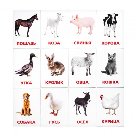 Купить Обучающие карточки по методике Г. Домана Домашние животные и птицы в Новосибирске Вы можете в магазине развивающих и настольных игр "Игры Почемучек"