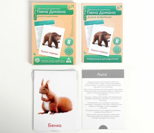 Купить Обучающие карточки Г.Домана Дикие животные в Новосибирске Вы можете в магазине развивающих и настольных игр "Игры Почемучек"