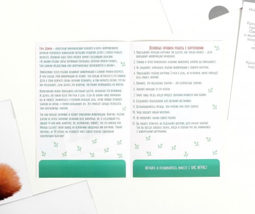 Обучение по карточкам даже по 5 минут в день стимулирует развитие различных отделов головного мозга, благодаря чему у ребёнка формируется фотографическая память, он развивается гораздо быстрее сверстников и с рождения открывает для себя мир энциклопедических знаний.