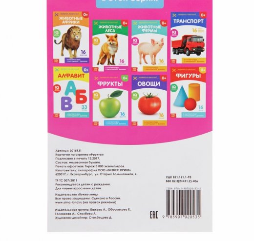 Двусторонние карточки созданы по методике раннего развития Домана. Американский врач-физиотерапевт Глен Доман предлагал каждый день показывать малышам специальные карточки в течение нескольких секунд. И сопровождать их изображениями предметов, например овощей и животных, подписанных красным цветом. Дети, видя их, запоминают слова. Главное — чётко и громко произносить их названия.