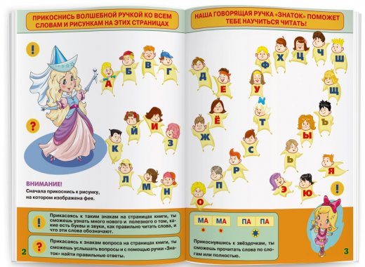 С помощью ручки ЗНАТОКTM и звуковых книг этой обучающей игры можно научиться правильно произносить буквы и звуки, слова и предложения, научиться читать и значительно расширить свой словарный запас.