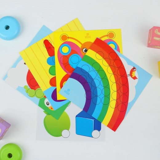 2. Пока ребенок выкладывает камешки, спрашивайте у него, какие цвета он использует, что видит на картинке, какой это предмет или персонаж, и что он делает.