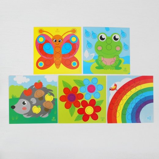 3. В набор входит карточка с пустыми полями. Пофантазировав, ребенок может придумать свой рисунок из камешков и выложить его.