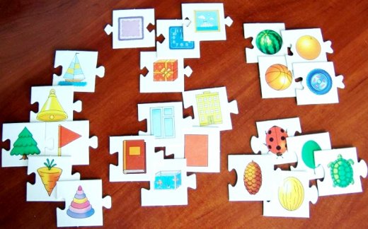 Игра развивает мышление, внимание, память, увеличивает словарный запас, совершенствует мелкую моторику рук, учит рассуждать, сравнивать и сопоставлять предметы по форме, называть группы предметов обобщающим словом - круглые, овальные, квадратные, треугольные, прямоугольные.
